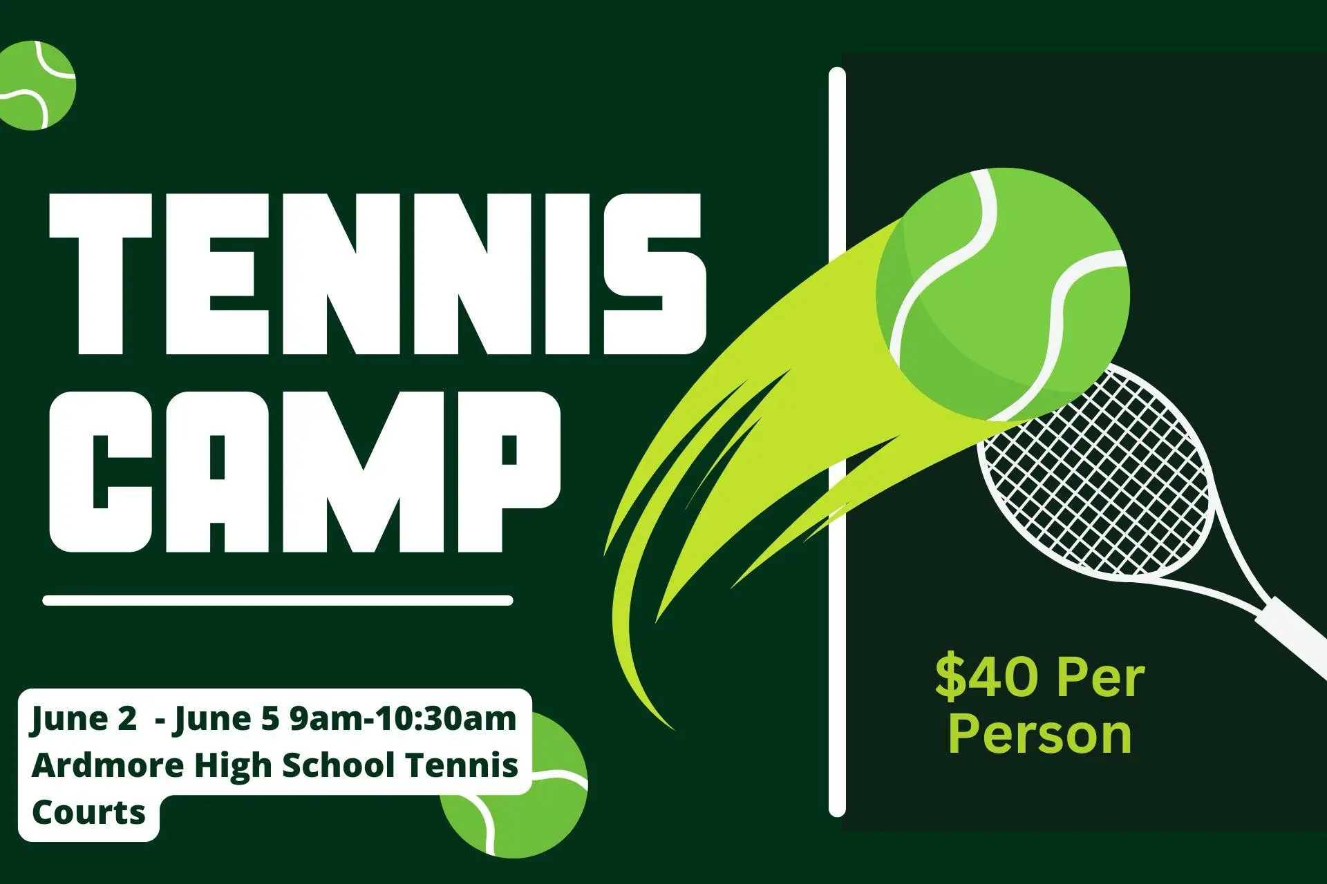 Whether you're a beginner or an experienced player, this camp is designed for you! Join Nathan Roberts and his team of expert coaches for a fun and engaging tennis experience.experience! This camp is a fantastic opportunity to improve your game, meet new friends, and have a blast on the court! Don’t miss out—sign up today...